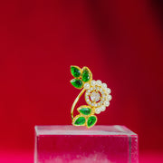 The Leafy Petal Nath is a meticulously crafted traditional nose ring designed with delicate petal motifs inspired by nature. Its intricate leafy design showcases expert craftsmanship, making it ideal for enhancing ethnic and bridal ensembles with elegance. Lightweight yet sturdy, this Nath ensures comfortable wear while adding a refined touch to your jewelry collection. Perfect for those seeking authentic handmade artistry, it blends cultural heritage with sophisticated style.